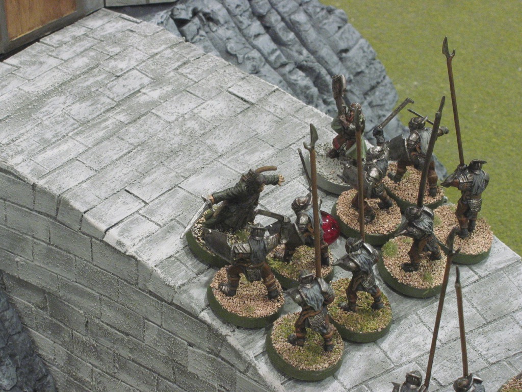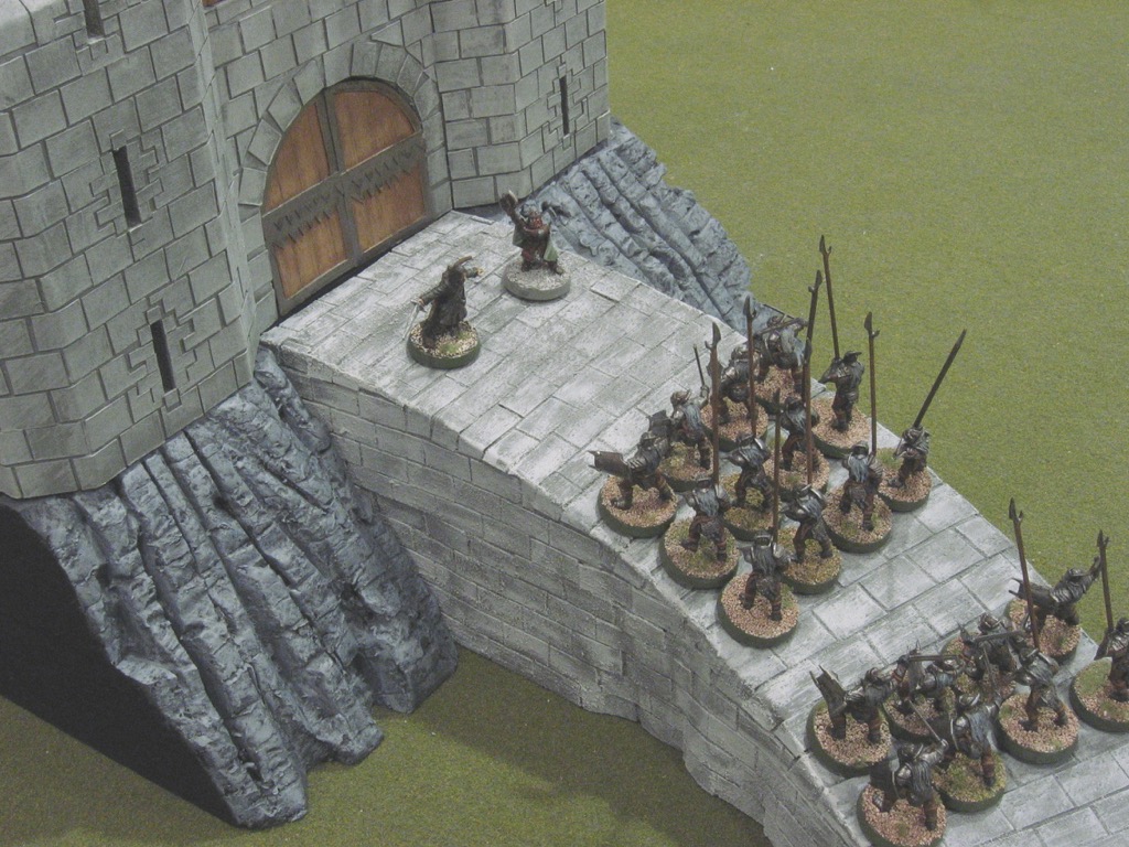 With a 6" causeway, Aragorn and Gimli wouldn't be able to block it off on their own, as there would always be room to go around them. Would they stand a chance if the Uruk-hai can slide by every turn? That just doesn't seem right. So I'm not too apologetic for the modification. But keep it in mind that this isn't a "per spec" replay.