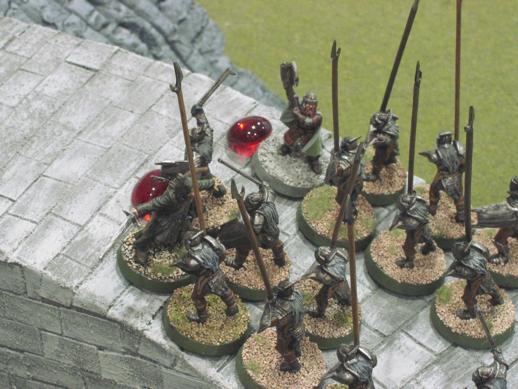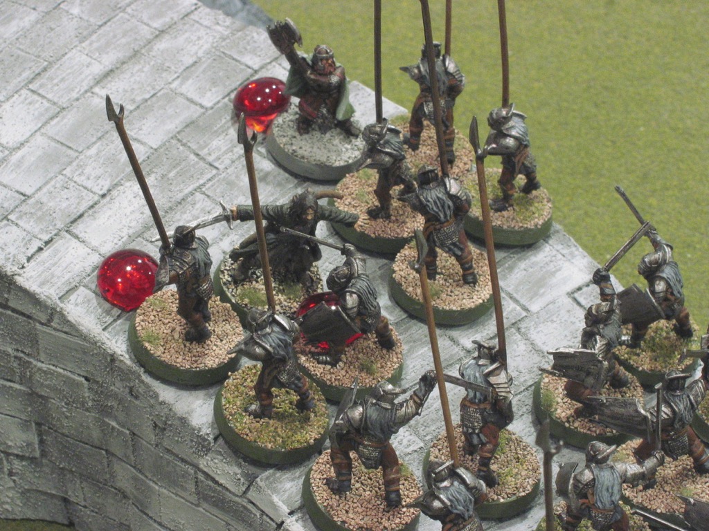 I didn't bother with my usual "Forces" section here because the orders of battle are entirely straightforward. Aragorn and Gimli deploy within 2" of the gate; Evil then deploys ten Uruk-hai swordsmen and ten Uruk-hai pikemen at least 3" away from the Good models.
