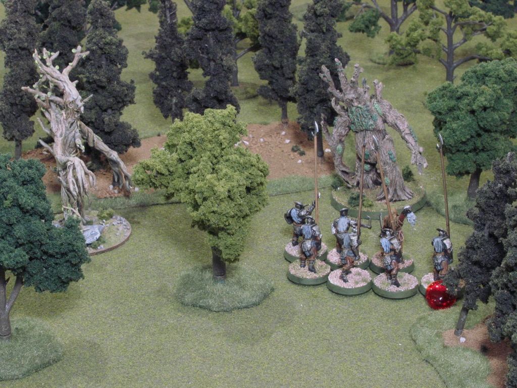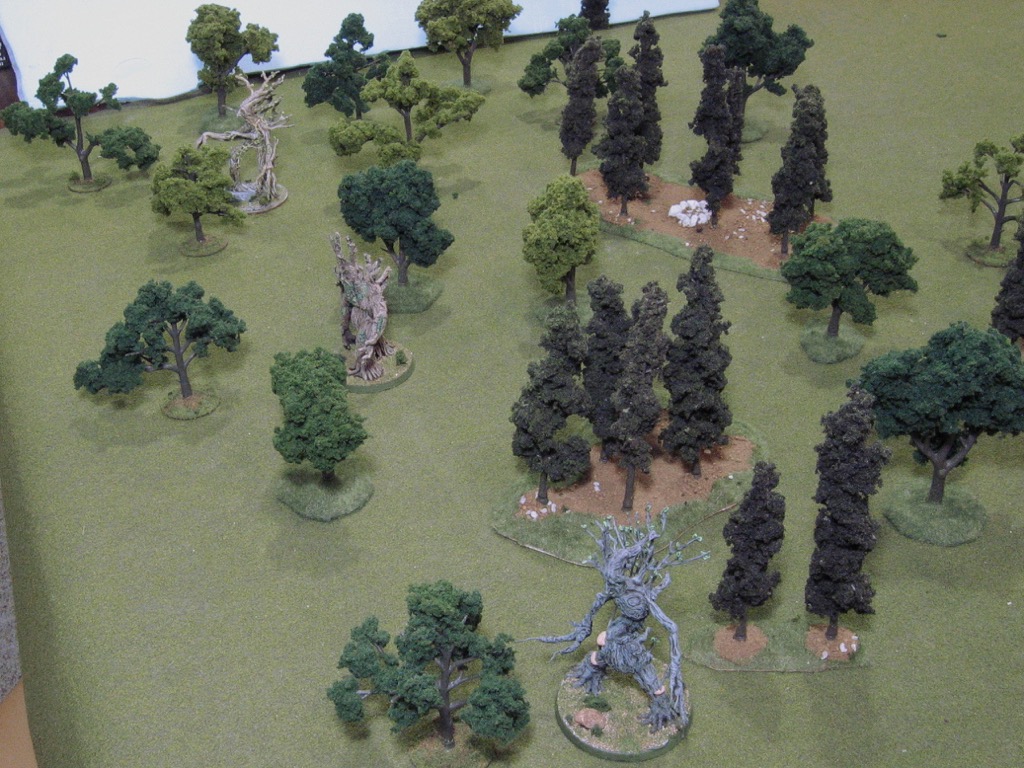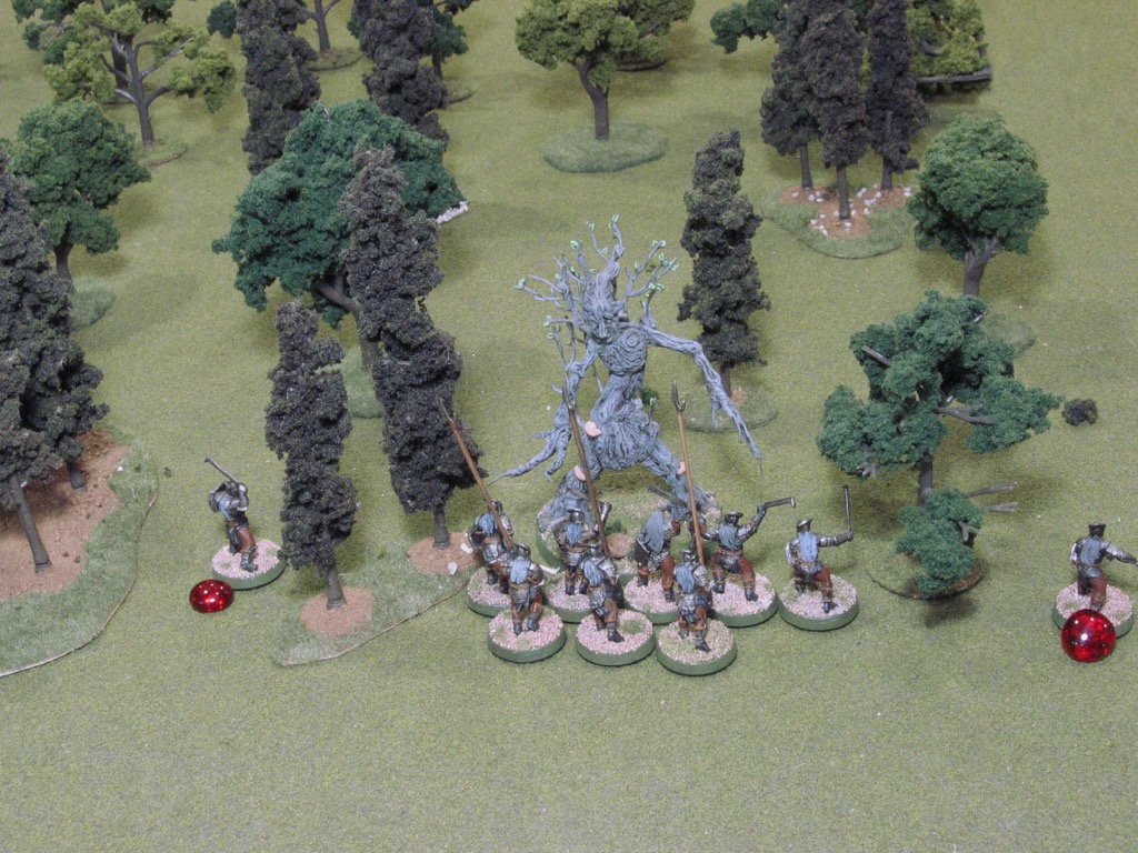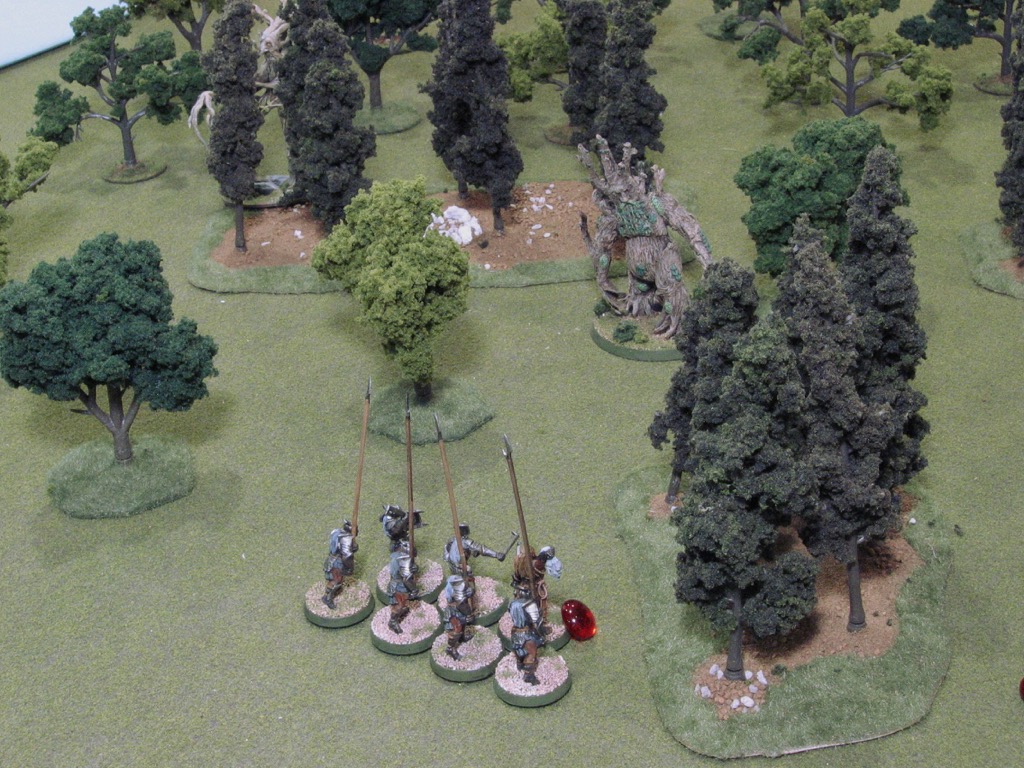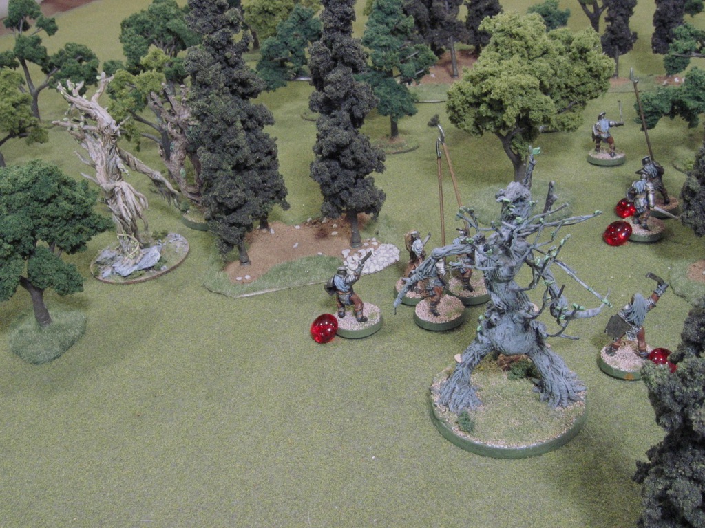 The Linden Ent moves to re-engage his opponents from last turn. The Ash Ent is just out of range so moves to take a blocking position between the trees. The Birch Ent does as best he can to get where the action is.